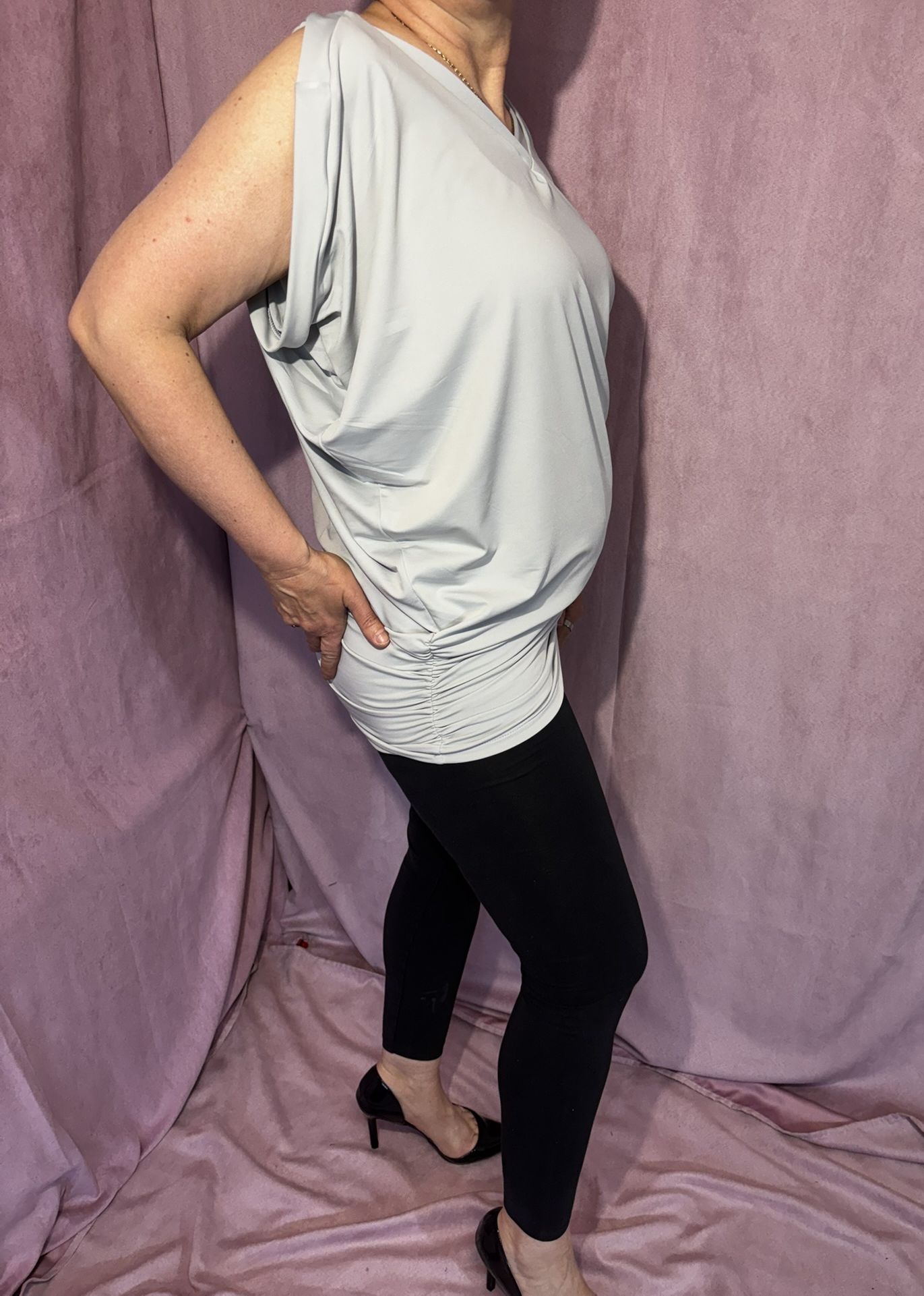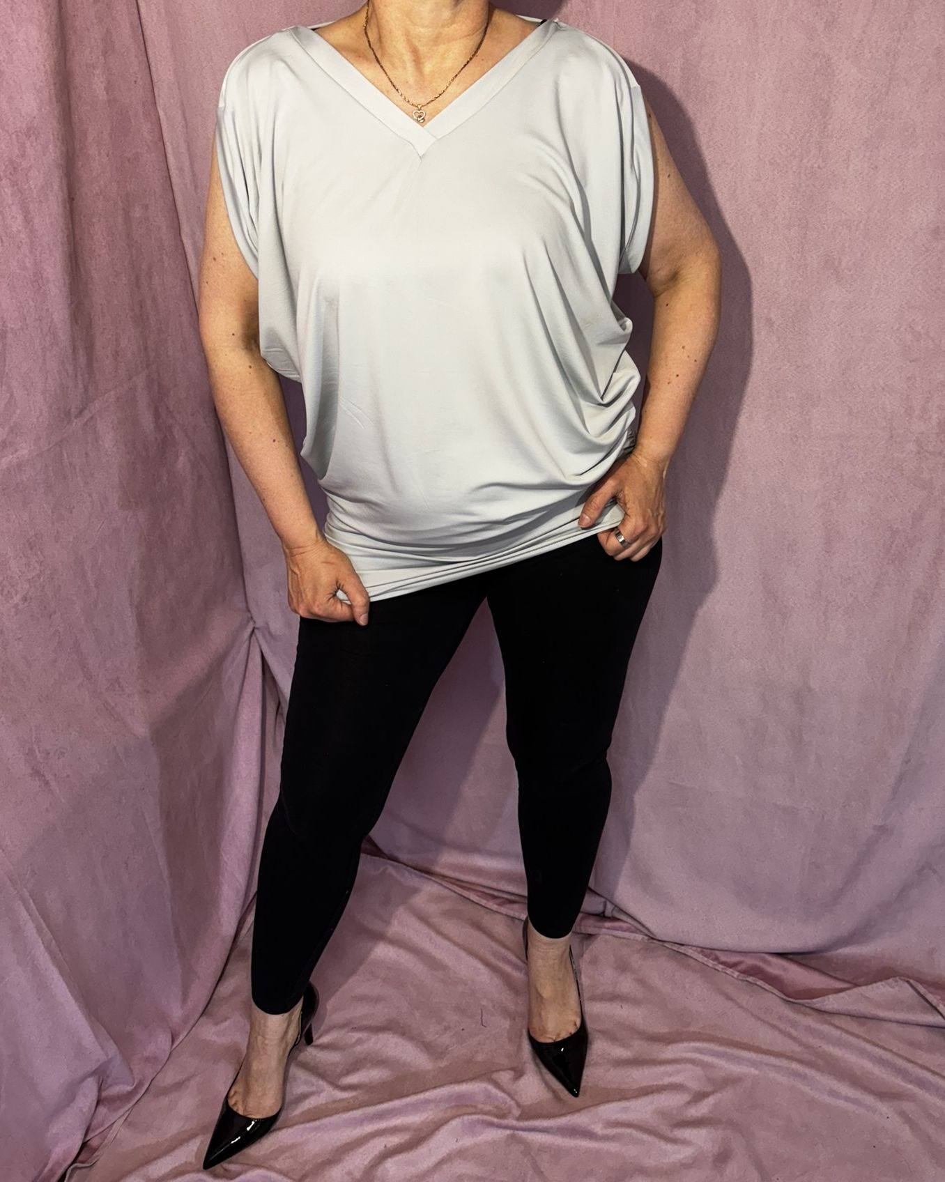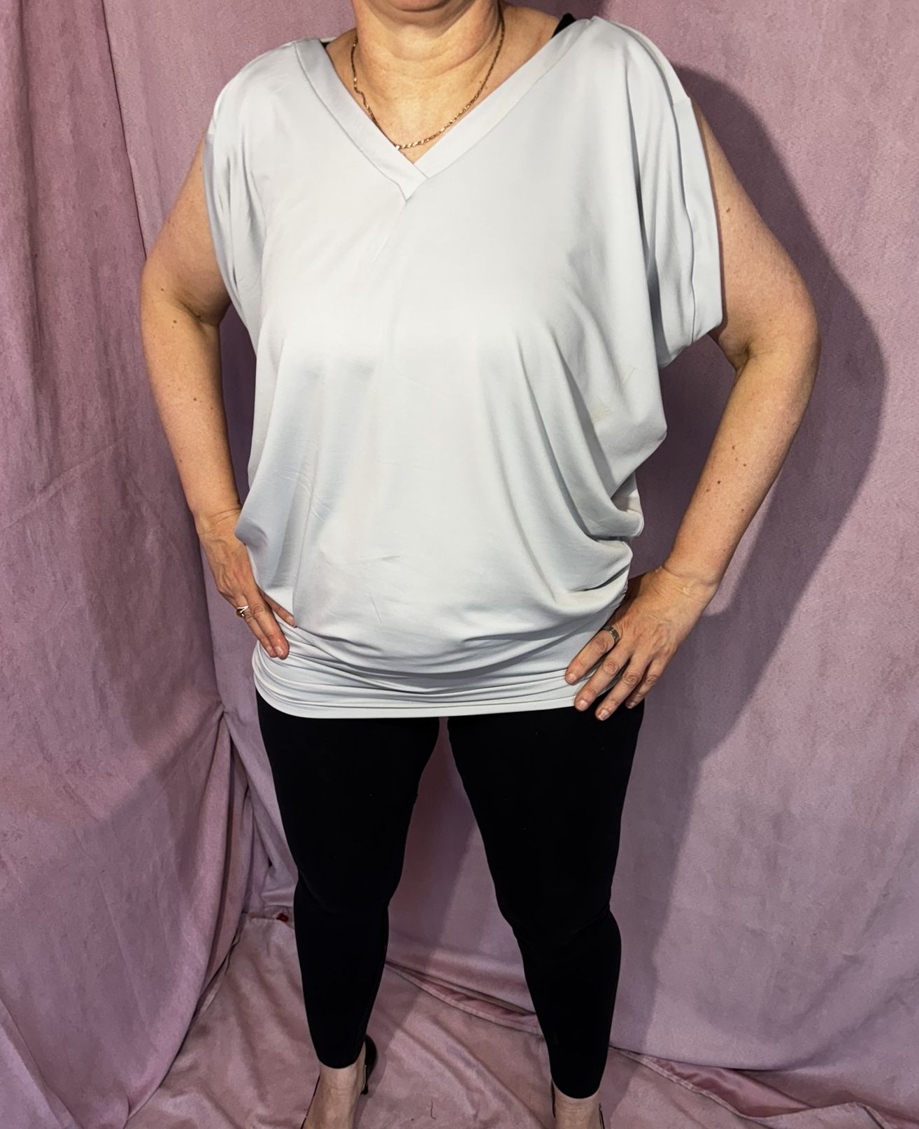 Oldalán gumírozott, vállán 1-1 pontban záródó bőrbarát, gyűrődés mentes gyakorló felső