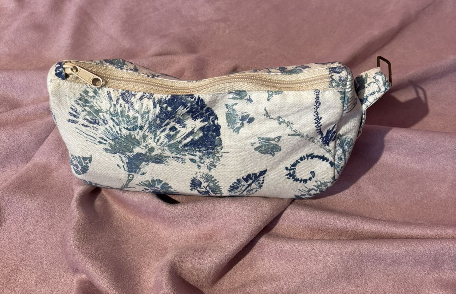 Zipzárral záródó, belül lenvászon zsbekkel és elválasztókkal ellátott, mosható táska