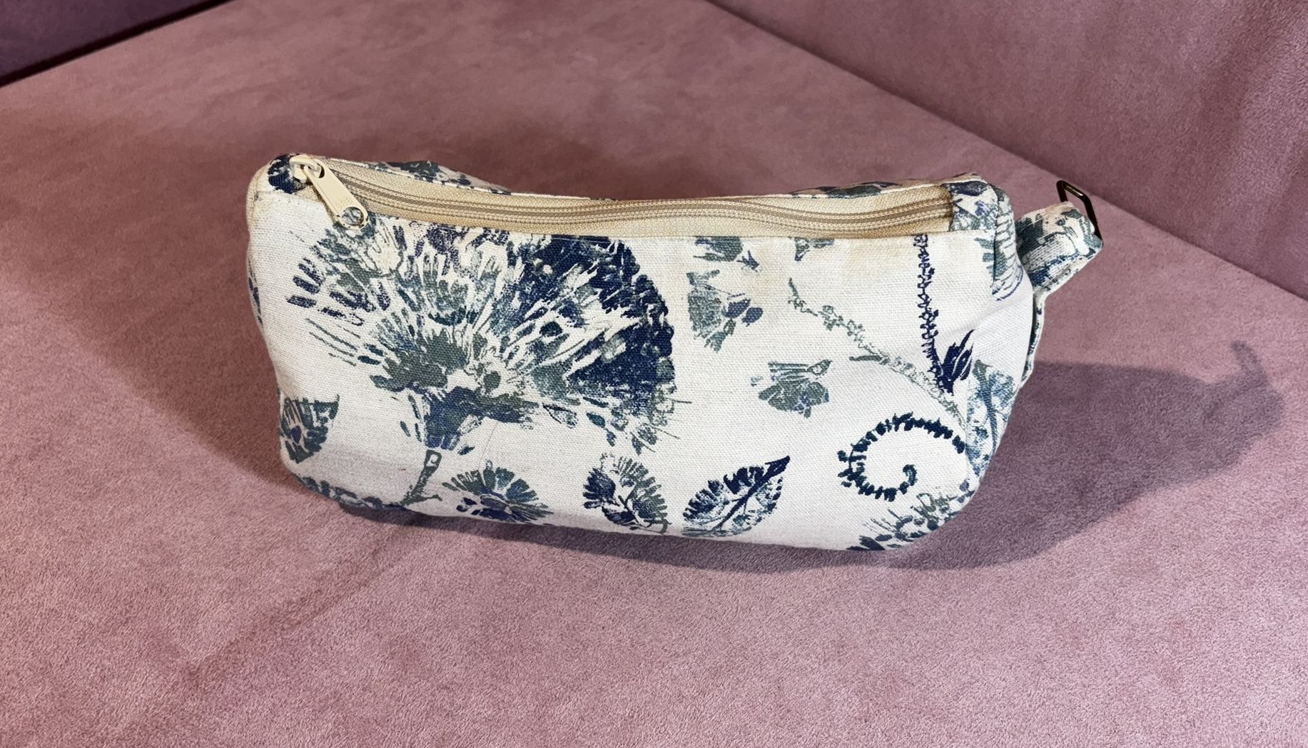 Zipzárral záródó, belül lenvászon zsbekkel és elválasztókkal ellátott, mosható táska