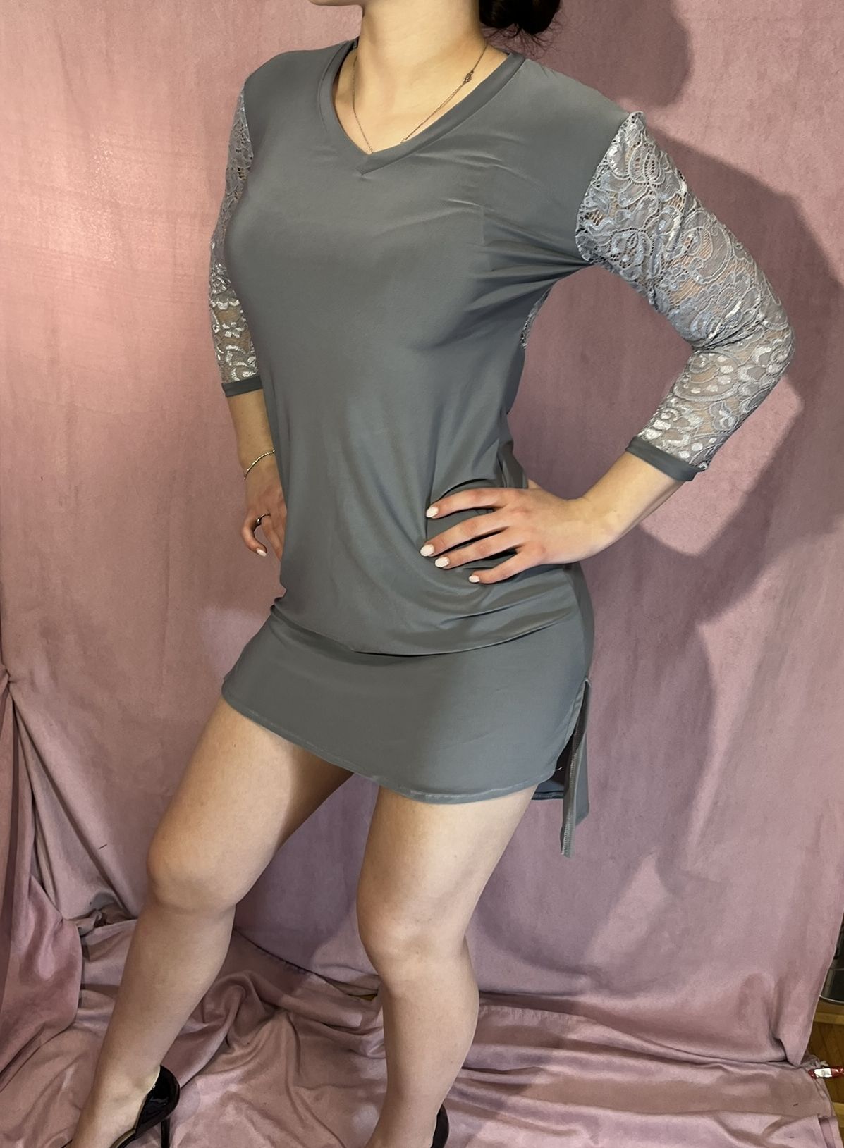 Mind két újrész 3/4es hosszú, csipkéből, háta derékig csipke betoldással. Oldalán hasíték. Ideális válsztás bármely tánc gyakorlásához
