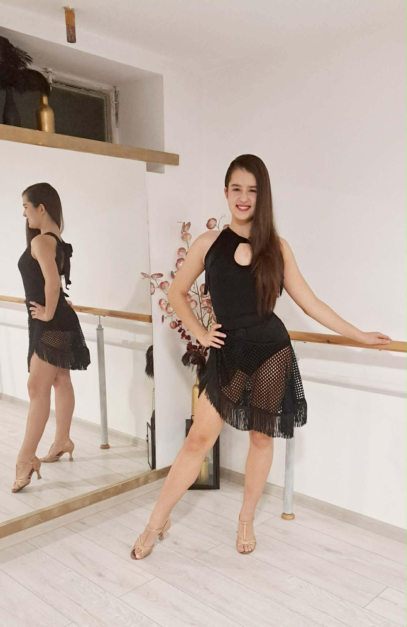 hálós anyagú unisex latin szoknya, az aján rojt diszitessel, a szokny át lapolt es övvel lehet összekötnia derekán